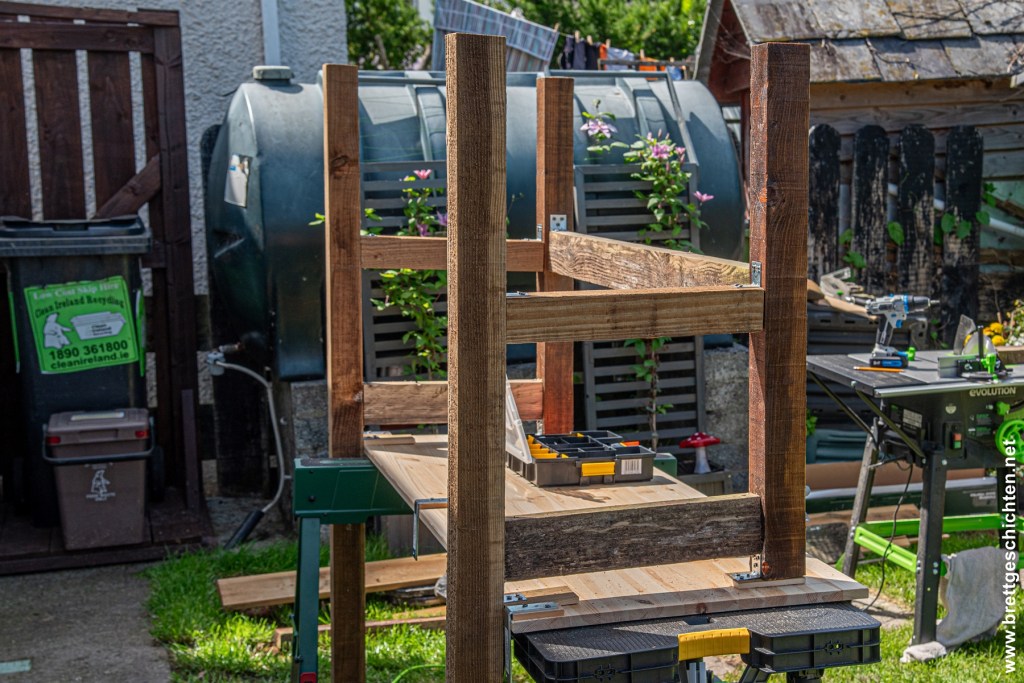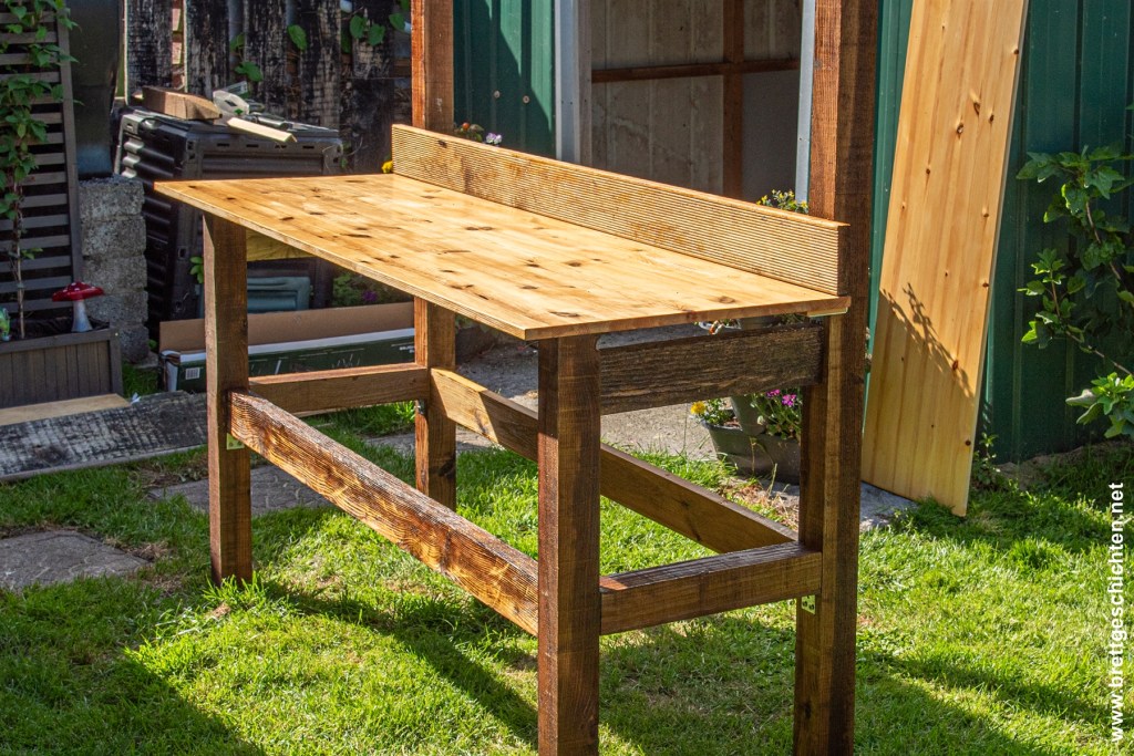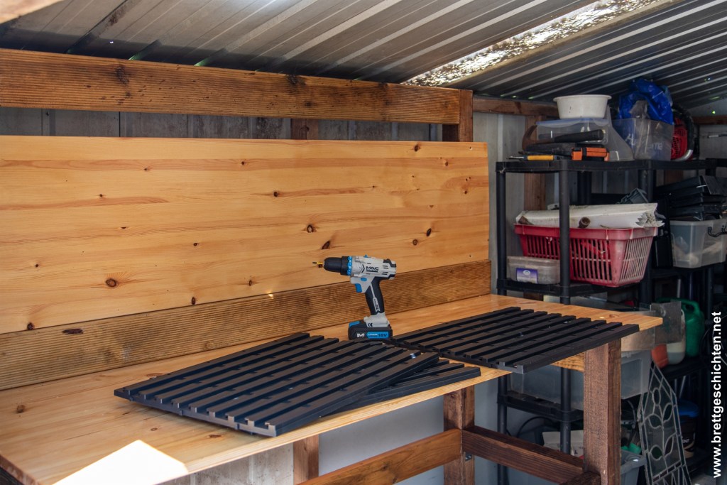 Nachdem wir unseren Schuppen im Garten aufgeräumt und die Regale darin umgestellt hatten, war nun deutlich mehr Platz. So kam mir die Idee, eine feste Werkbank zu bauen.
