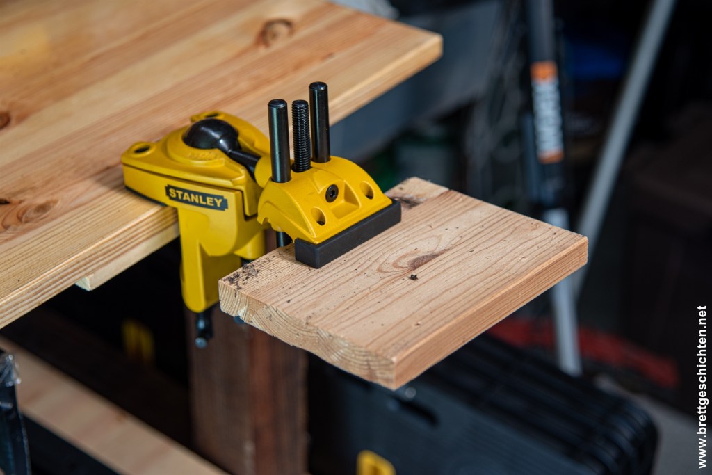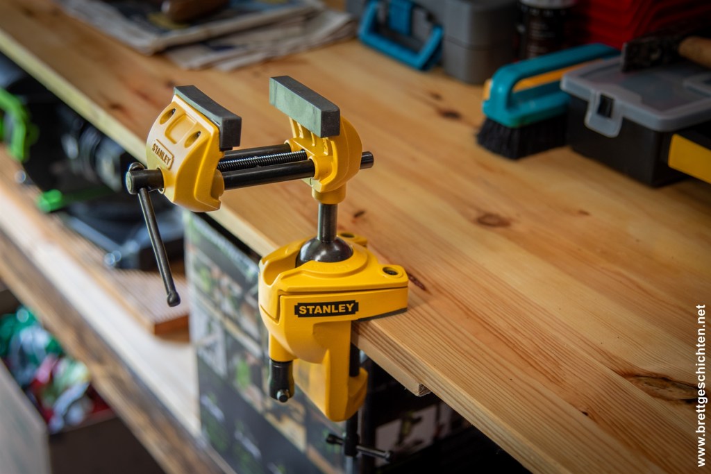 Diesen praktischen Schraubstock habe ich vor ein paar Wochen in einem Video auf YouTube entdeckt und war sofort begeistert von dem Teil. Die Größe war ideal für meine selbst gebaute Werkbank.